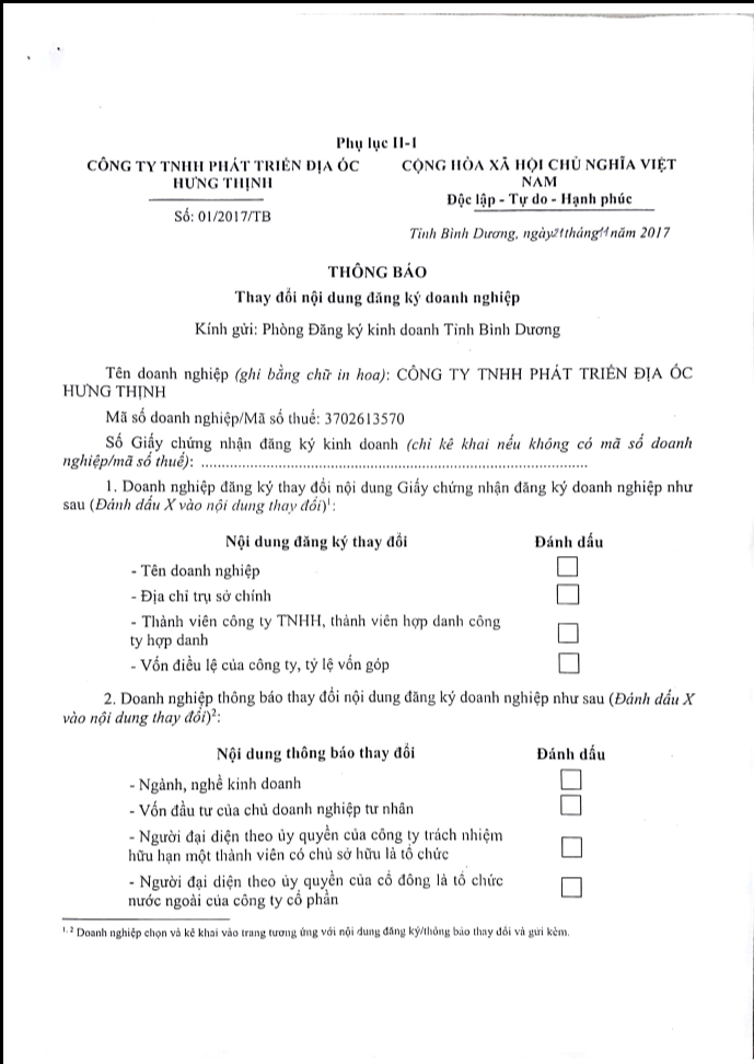 Thay đổi ngành nghề kinh doanh
